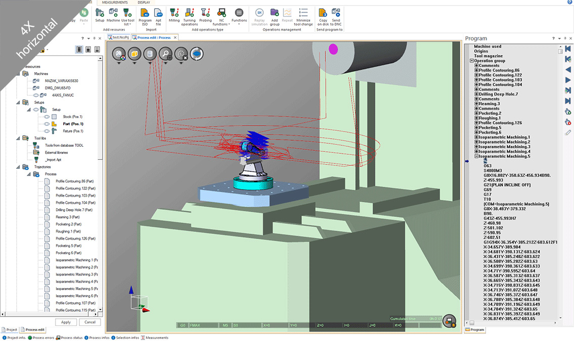 Z hlavního CAM (CATIA, NX, Creo, TOPSOLID CAM, MASTERCAM, ...) nebo stávajících CNC programů (ve formátu G-kódu), NCSIMUL 4CAM generuje přímo bez externího postprocesoru, nativních programů CNC, ověřené a optimalizované programy při zohlednění fyzikálních požadavků dílny (nástroje, řezné podmínky, kinematika, strojní kontroléry ...)