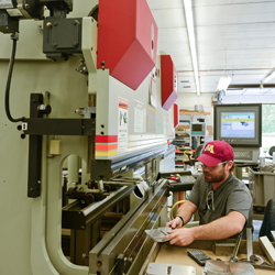 Sheeley then plugs the flash drive into the press brake, and the manufacturing begins.